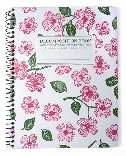 Spiral bound Decomposition Books use a versatile spiral wire binding. These spiral notebooks feature 100% post-consumer-waste recycled paper and are printed with soy ink.
