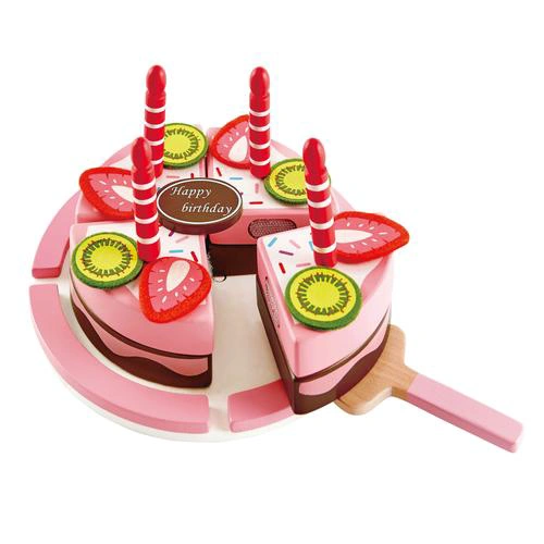 A high quality multipurpose cake. Recreate birthdays and celebrations or use to reinforce numeracy skills. Count the slices of cake, the number of fruit toppings and candles. 23 pieces made of wood and felt. Measures 11.1 H x 19.4cm d. Ages 3yrs+