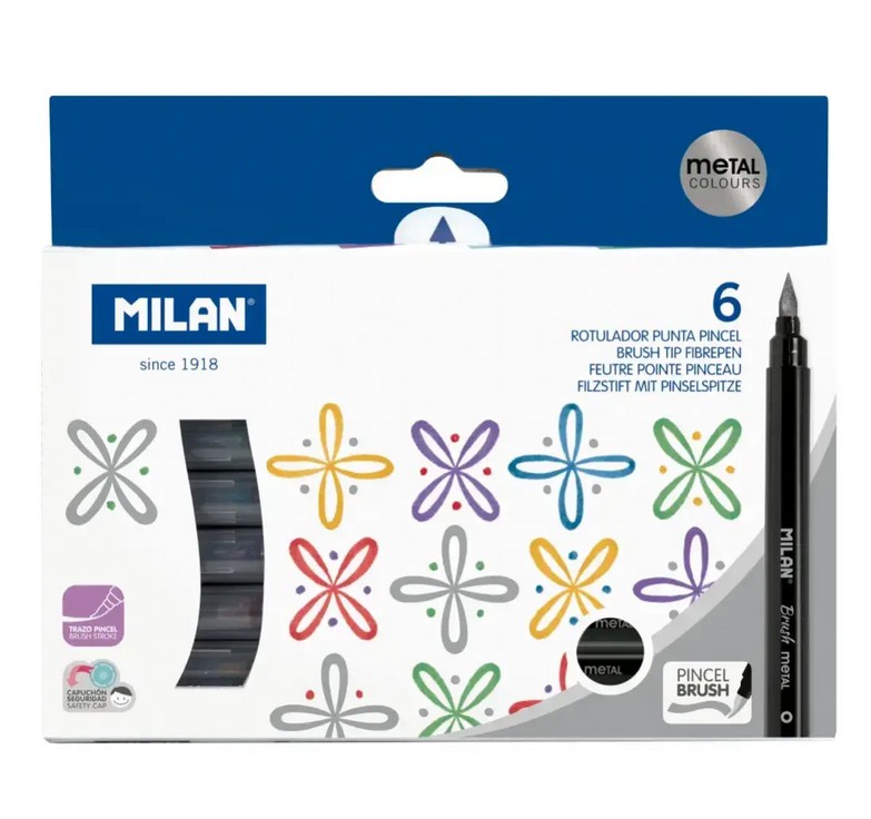 Milan Markers Brush Tip Metallic 6 Pack
