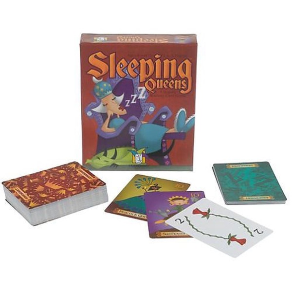 Imagine a place where there?s a queen of all pancakes, a king of cookies and a pack of over-protective dragons? If this sounds like something out of a dream, it actually is! Sleeping Queens was invented by 6-year-old Miranda Evarts, who thought up the game one night when she couldn?t fall asleep. She awoke the next morning and with help from her older sister, Madeleine and her parents, Denise and Max created this wonderfully whimsical world of napping nobles. As you immerse yourself in the Evarts? fantasyland, you will find a game that helps develop memory, strategy, and elementary arithmetic skills. Just be careful when playing potion cards or you could wind up putting all the players to sleep! HOW TO PLAY: Rise and Shine! The Pancake Queen, the Ladybug Queen and ten of their closest friends have fallen under a sleeping spell and it’s your job to wake them up. Use strategy, quick thinking and a little luck to rouse these napping nobles from their royal slumbers. Play a knight to steal a queen or take a chance on a juggling jester. But watch out for wicked potions and dastardly dragons! The player who wakes the most queens wins.