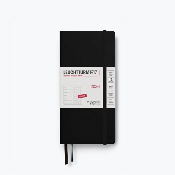 The Wallet Black Leuchtturm1917 weekly notebook diary is a simple yet functional companion for 2026. Every page features the calendar week on the left and a dotted notebook page on the right.