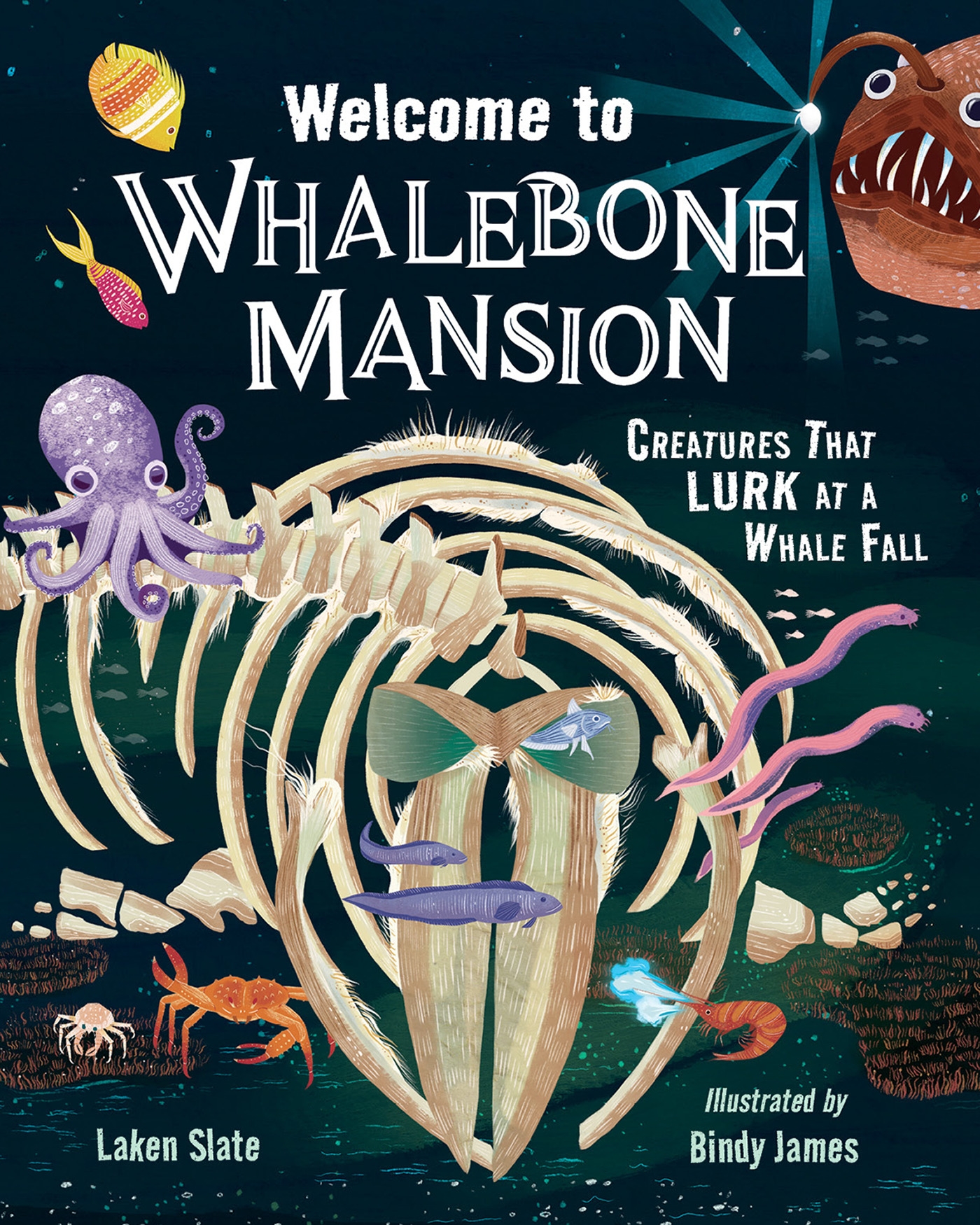 Two small fish discover a whalebone mansion, enter at their own risk, and encounter a number of creepy creatures along the way. Told in a graphic-style format, with playful text that asks young readers questions and includes sidebars that provide additional facts, Welcome to Whalebone Mansion invites kids to a delightfully spooky, informational feast!